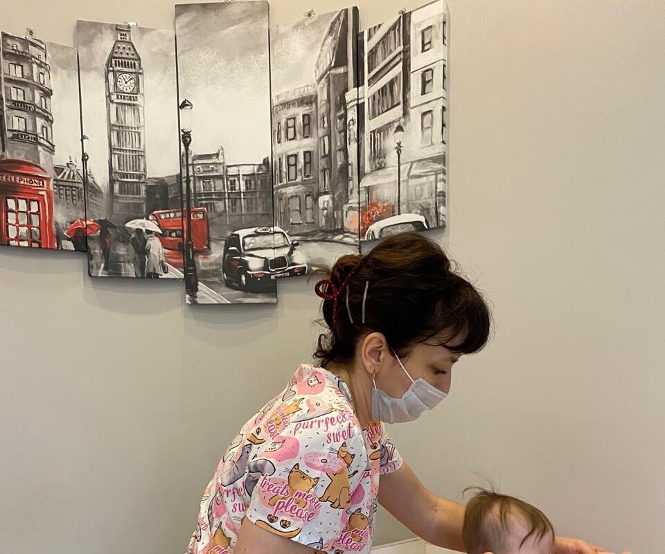 Делает массаж деткам с 2-х недель жизни. Работает с ортопедией, неврологией, с травмами, ожогами, а так же с недоношенными и послеоперационными малышами.