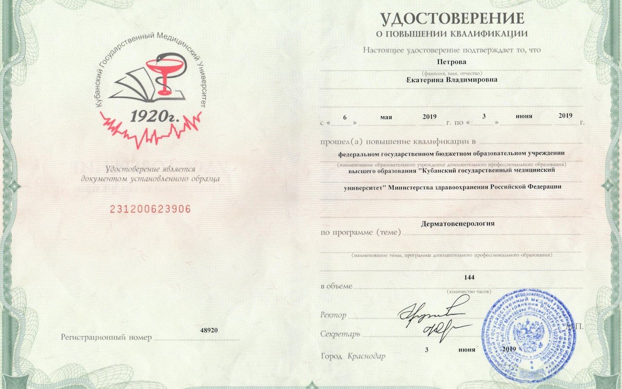 2014 — Новокузнецкий государственный институт усовершенствования врачей (дерматовенерология)
