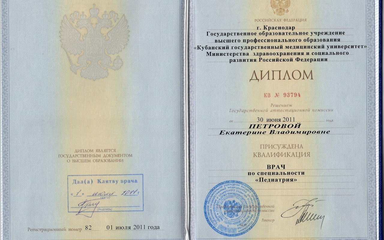2011 — Кубанский государственный медицинский университет (педиатрия)