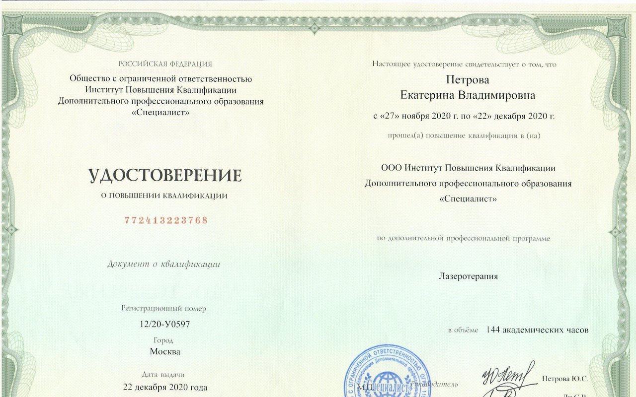 2018 — Сертификационный курс «Теория и практика применения препарата «Ботокс» в эстетической медицине.