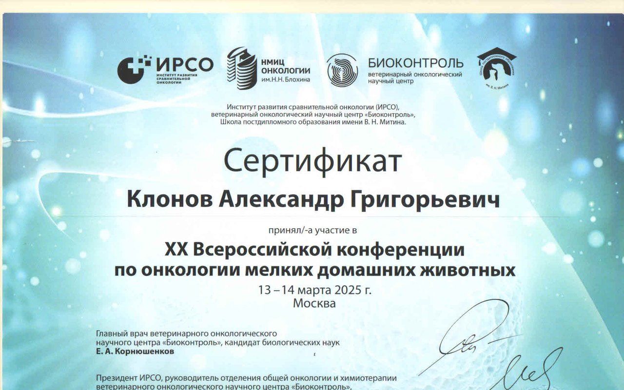 Ветеринарный врач-онколог, УЗИ-диагност, хирург.