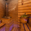 В бане есть небольшая уютная парилка, душевая, ведро для обливаний холодной водой, уютная кухня