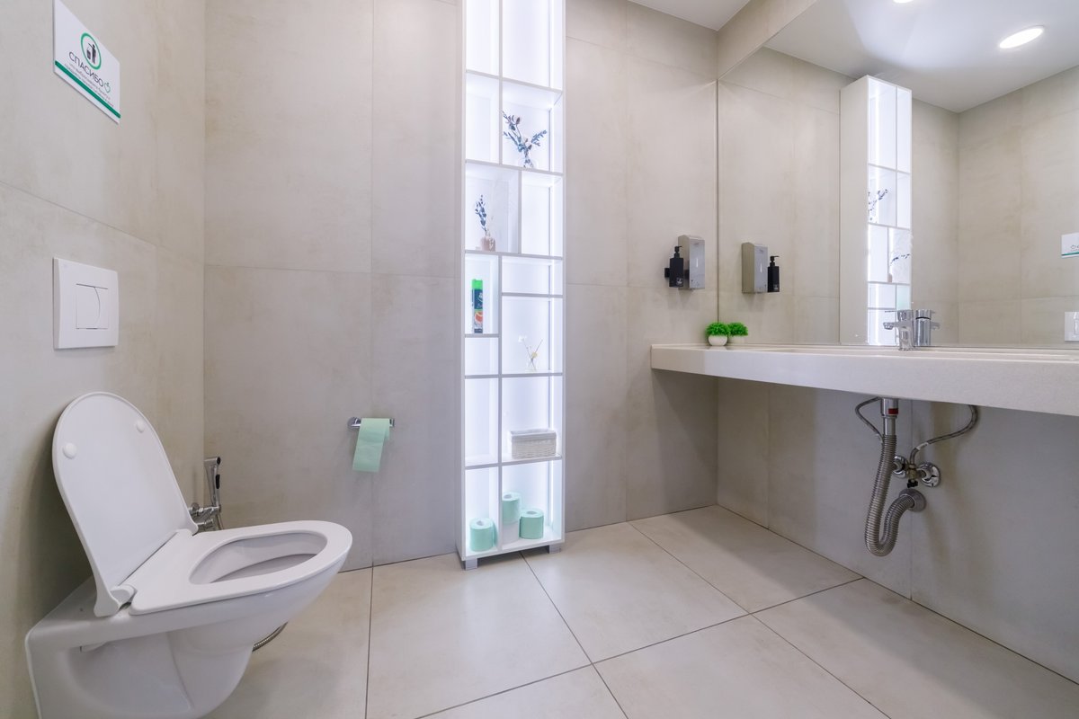 автоматические двери, вызов персонала, пандус, подходит для незрячих и слабовидящих, подъёмник, туалет для маломобильных людей, удобный вход для людей с инвалидностью, широкий лифт