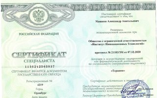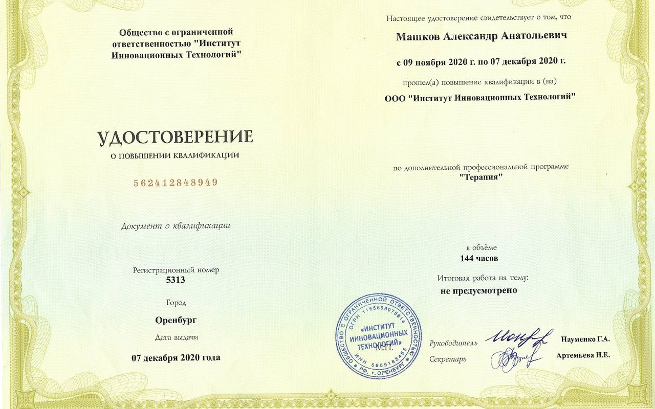 2020 — Институт инновационных технологий, г.Оренбург, цикл «Терапия»