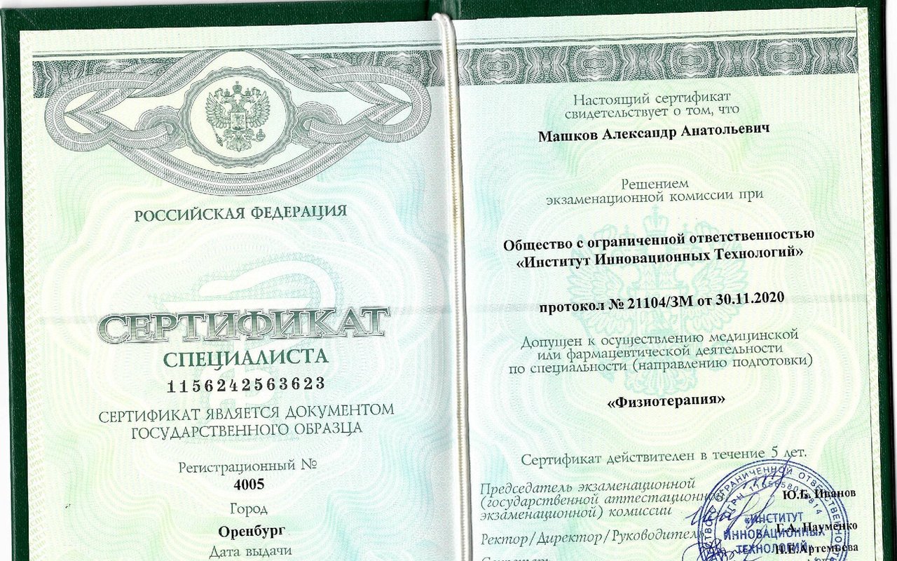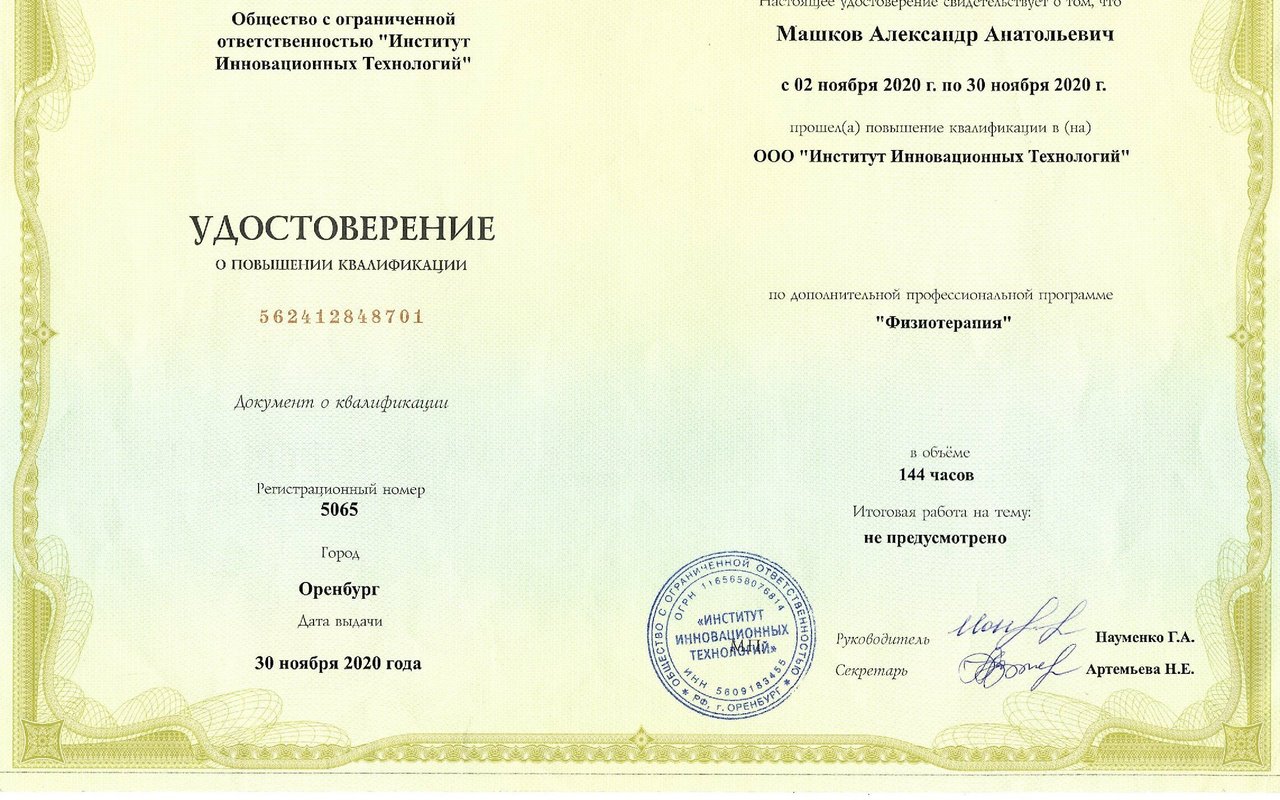 2020 — Институт инновационных технологий, г.Оренбург, цикл «Физиотерапия»