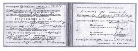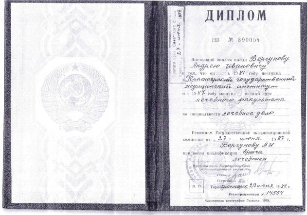 1987 — Красноярский государственный медицинский университет (лечебное дело)