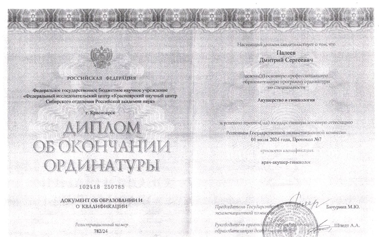 2024 — Красноярский научный центр Сибирского отделения РАН - ординатура по акушерству и гинекологии