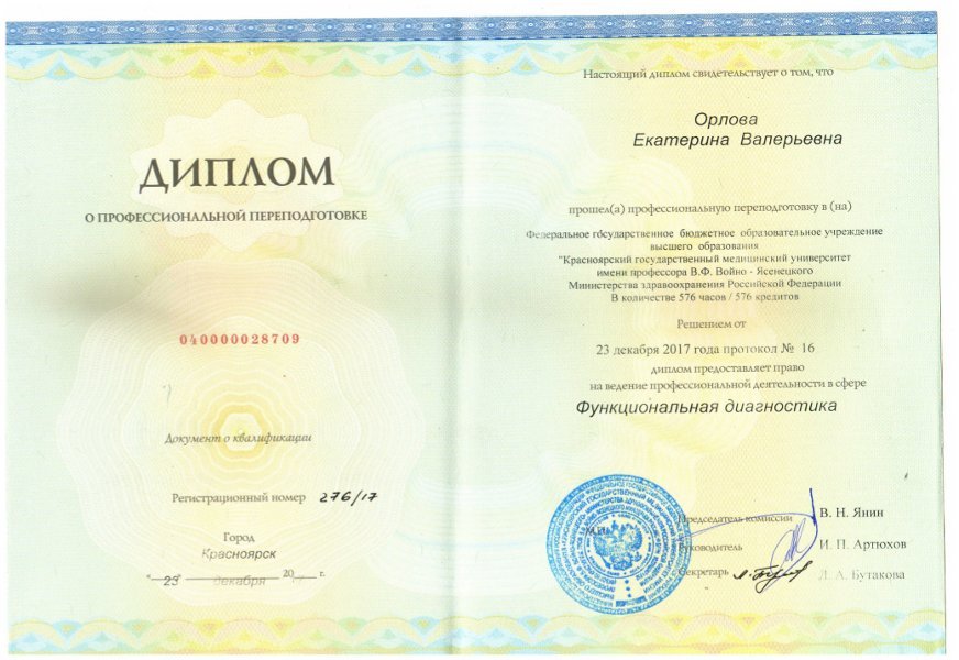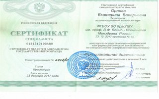 2017 — Сертификат и диплом по специальности "Функциональная диагностика"