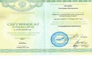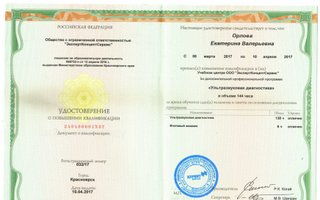 2017 — Сертификат и удостоверение по специальности "Ультразвуковая диагностика"