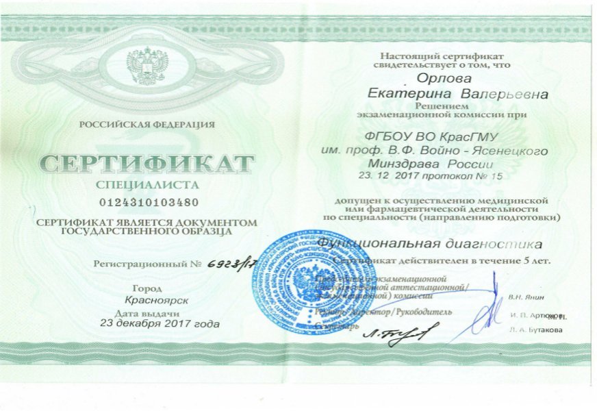 - Есть ли у Орловой Екатерины Валерьевны нужные сертификаты?