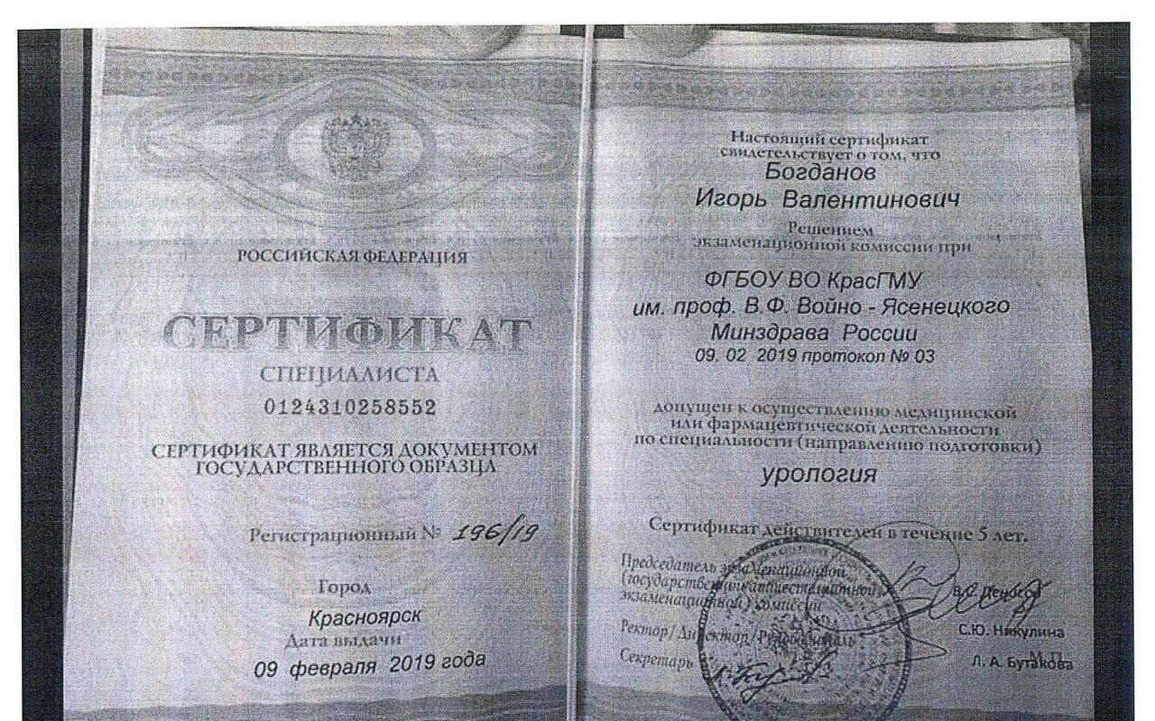 - Есть ли у Богданова Игоря Валентиновича нужные сертификаты?