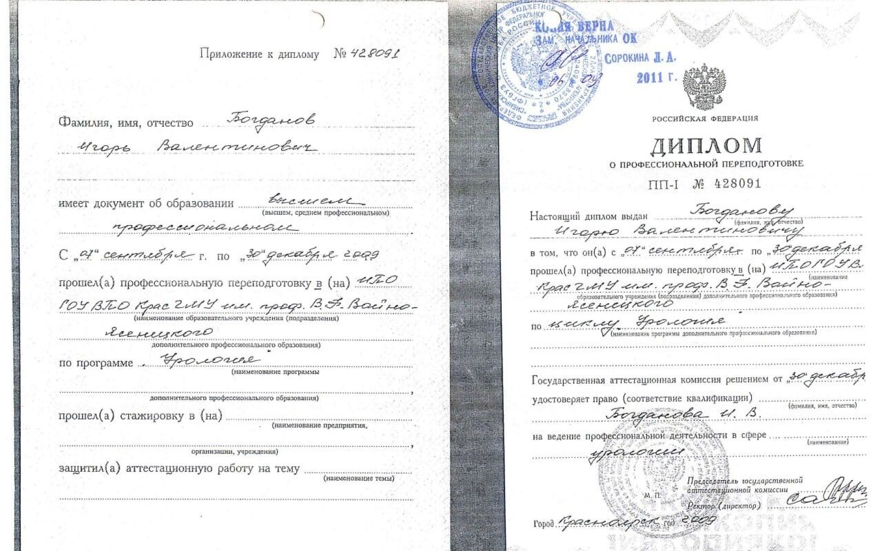 Места работы врача Игоря Валентиновича Богданова