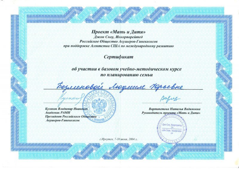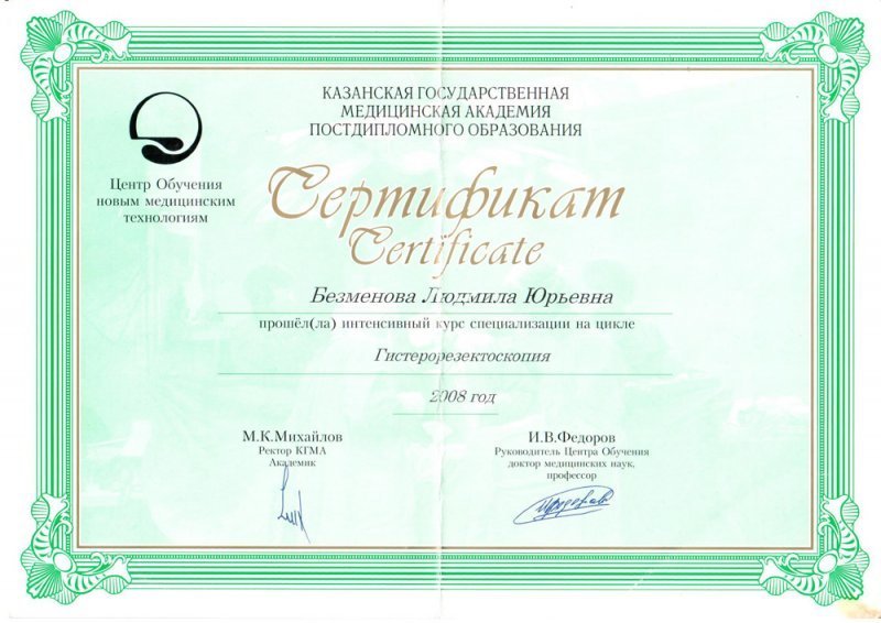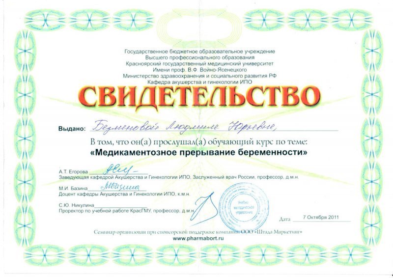 2008 — Красноярский государственный медицинский университет (акушерство и гинекология)