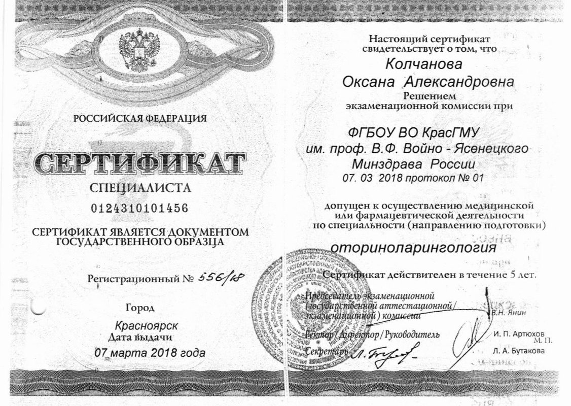 - Можно ли ознакомиться с сертификатами Колчановой Оксаны Александровны?