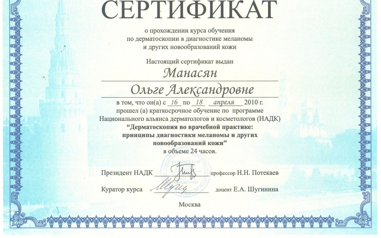 - Могу ли я ознакомиться с сертификатами Манасян Ольги Александровны?