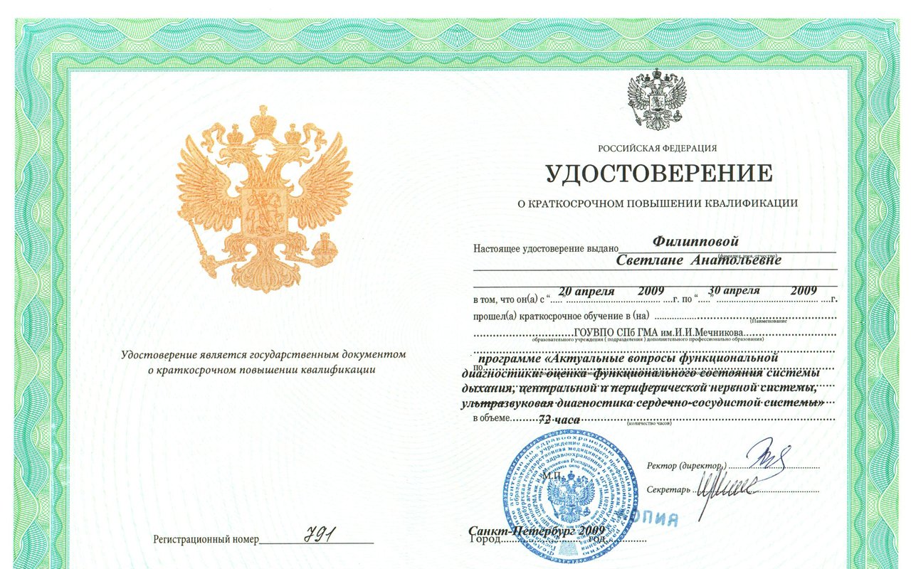 2012 — Красноярский государственный медицинский университет (УЗД сердечно-сосудистой системы)
