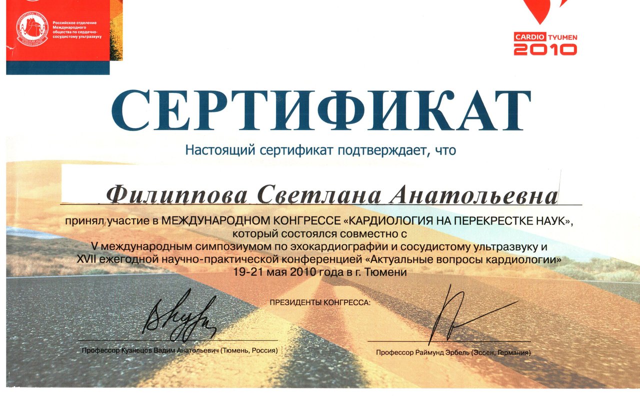 2010 — "Кардиология на перекрестке наук", с международным участием (Тюмень)