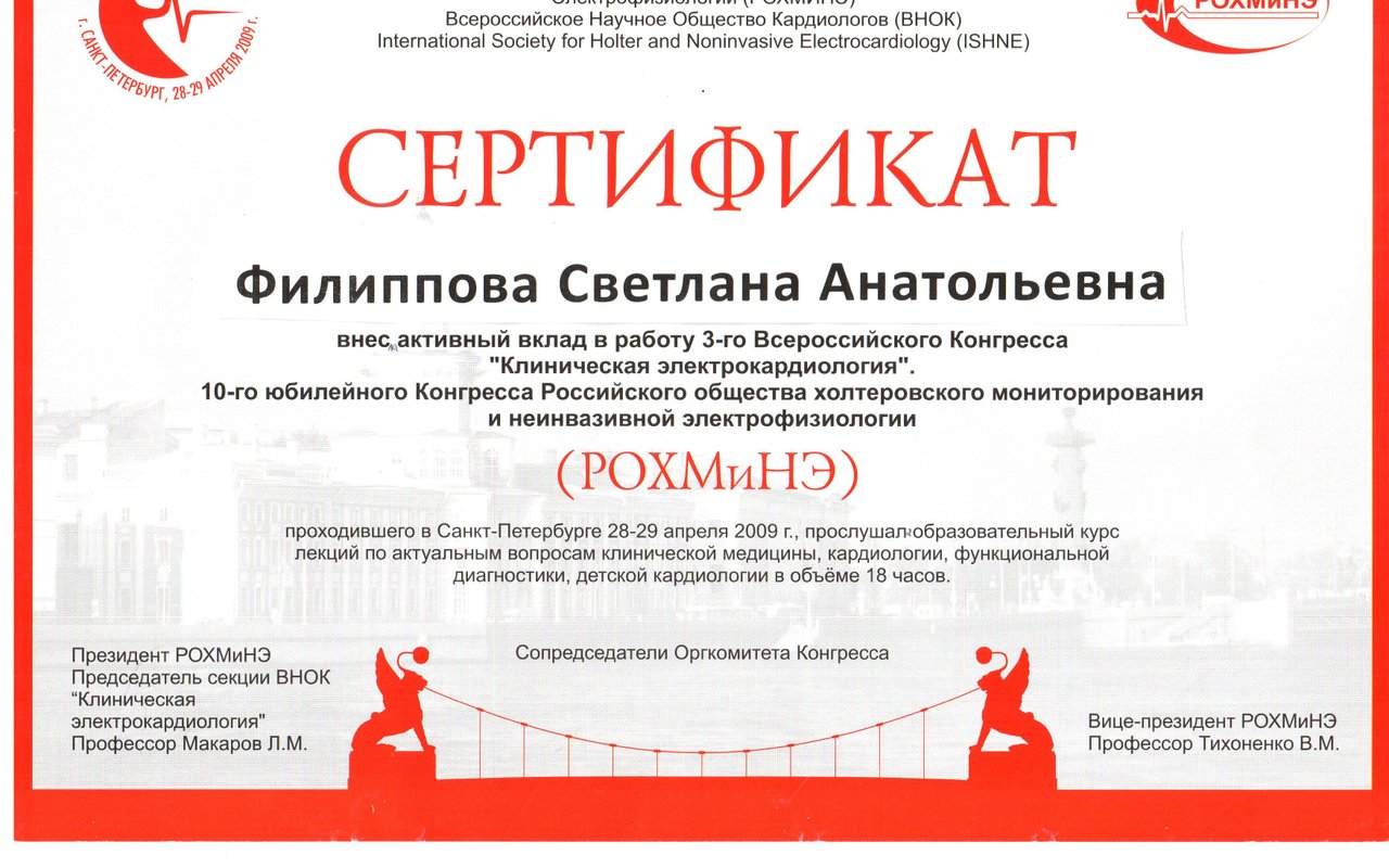 - Есть ли у Филипповой Светланы Анатольевны требуемые сертификаты?