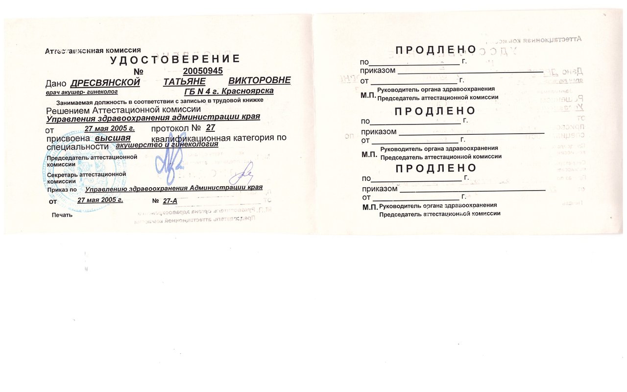 2013г – повышение квалификации по циклу "Экспертиза временной нетрудоспособности и контроль качества медицинской помощи", ИПО ГОУ ВПО «КрасГМУ», г.Красноярск