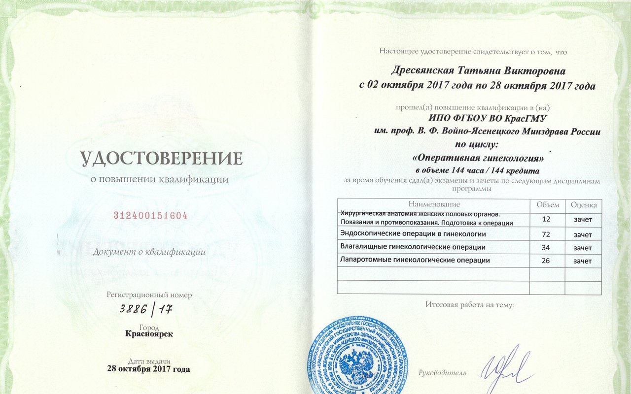2014 — Красноярский государственный медицинский университет (акушерство и гинекология)