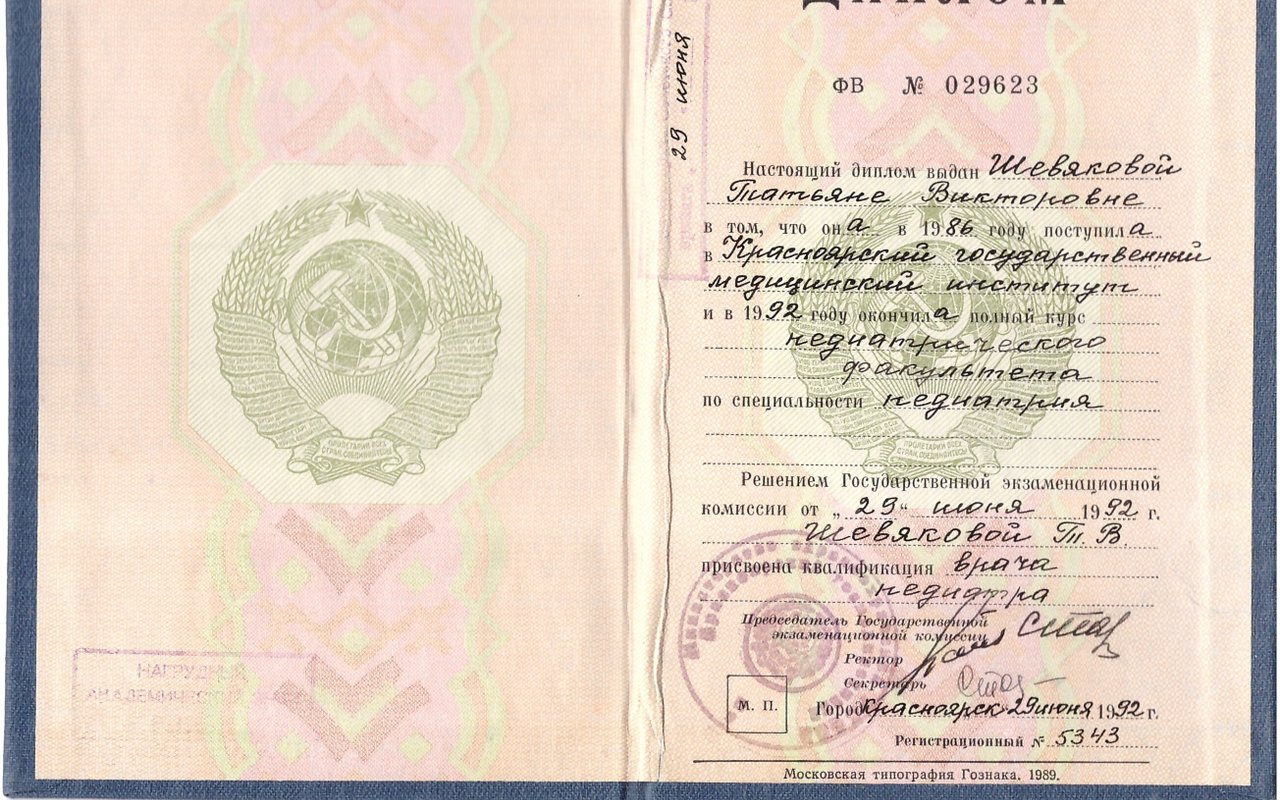 1987–1992 — Красноярский государственный медицинский университет (педиатрия)
