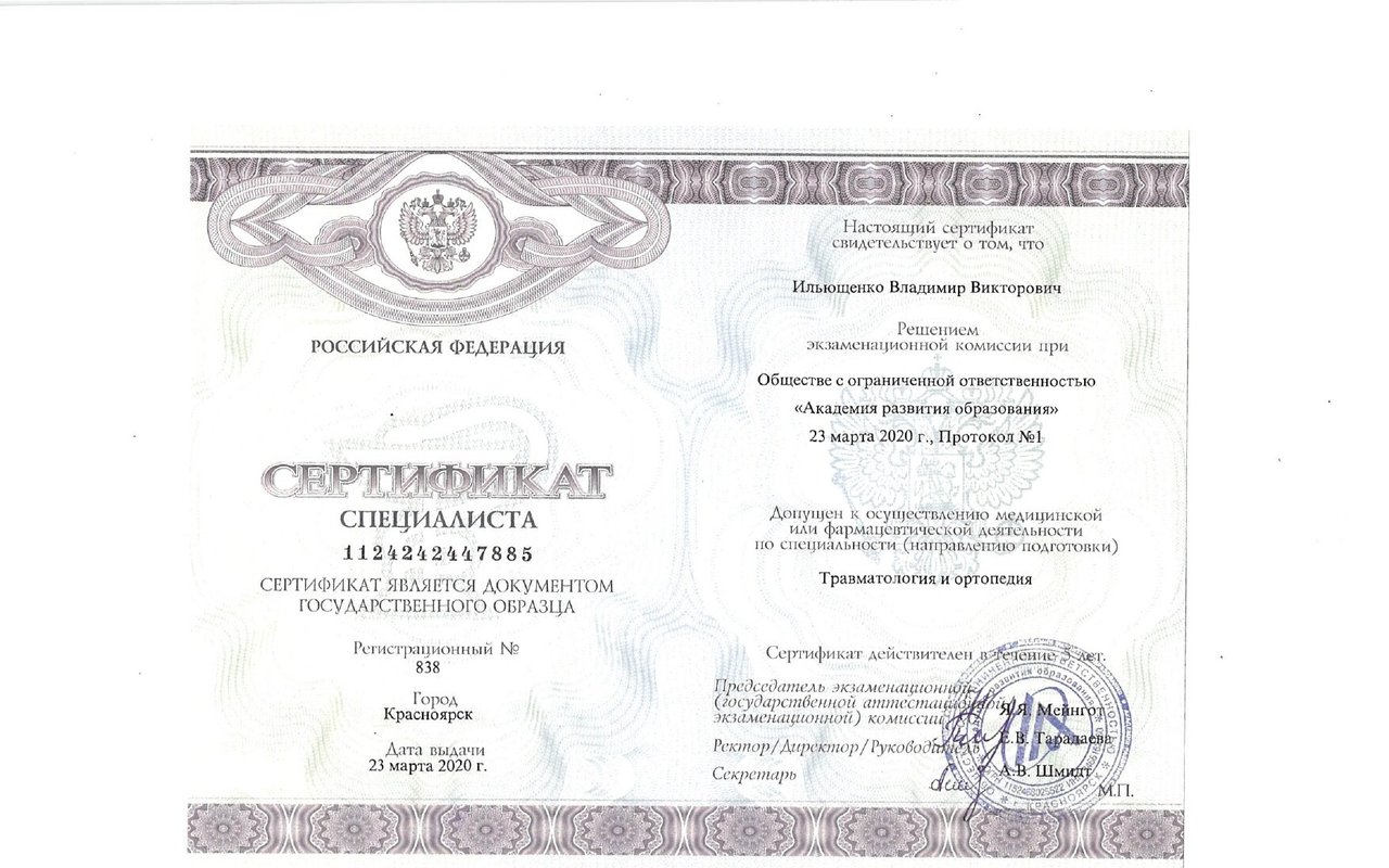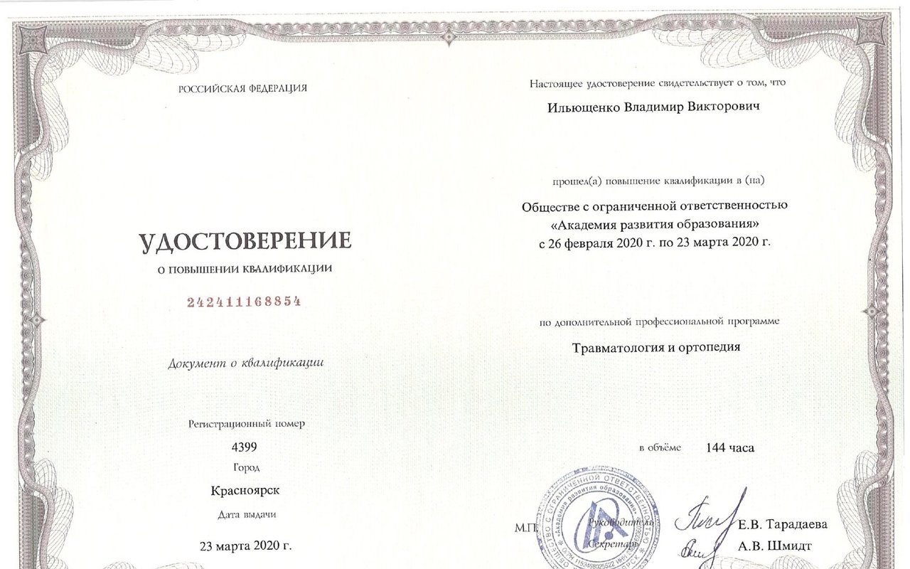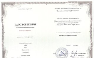 2020 — Красноярский государственный медицинский университет имени профессора В. Ф. Войно-Ясенецкого (травматология и ортопедия)