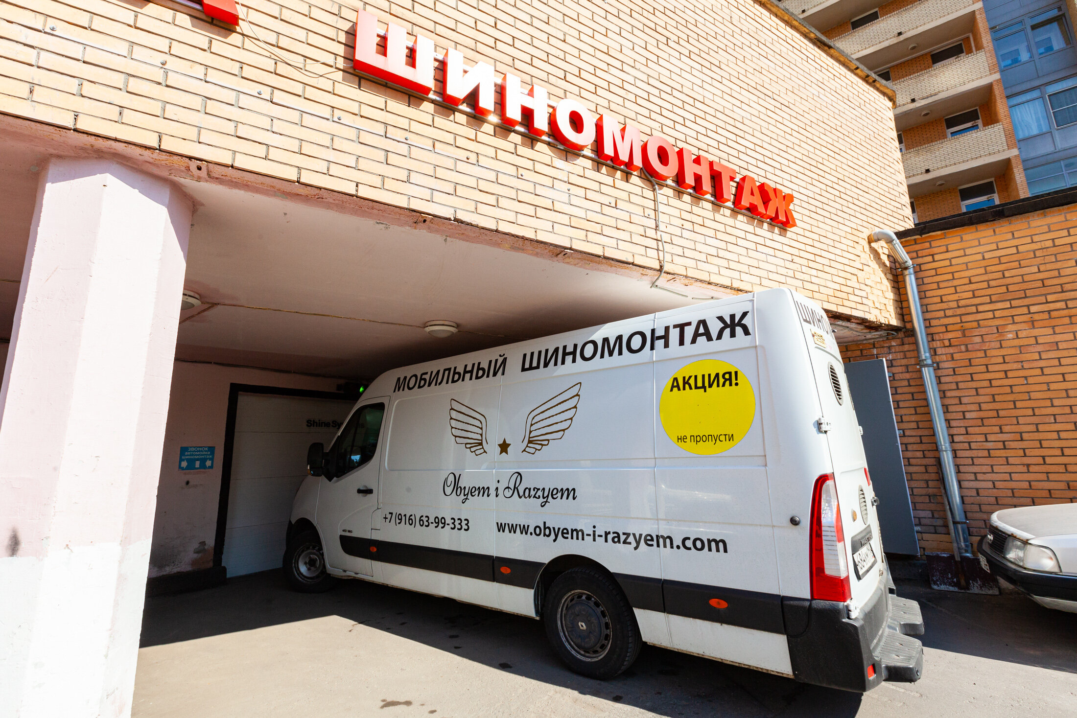 Мобильный шиномонтаж — это автомастерская на колесах, где есть все необходимое оборудование. Как правило, это микроавтобус с длинной колесной базой с установленным внутри компрессором, станками для балансировки колес и шиномонтажа, бензогенератором, пневматическим инструментом, материалами для ремонта. Такое решение позволяет проводить все виды шиномонтажных работ — повреждение колеса, срочную или плановую замену резины.