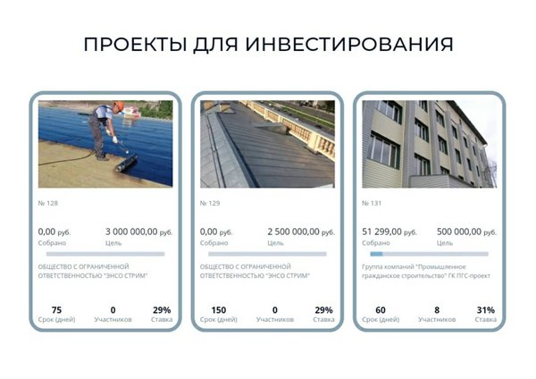 На платформе опубликованы новые проекты. Приглашаем инвесторов присоединиться.