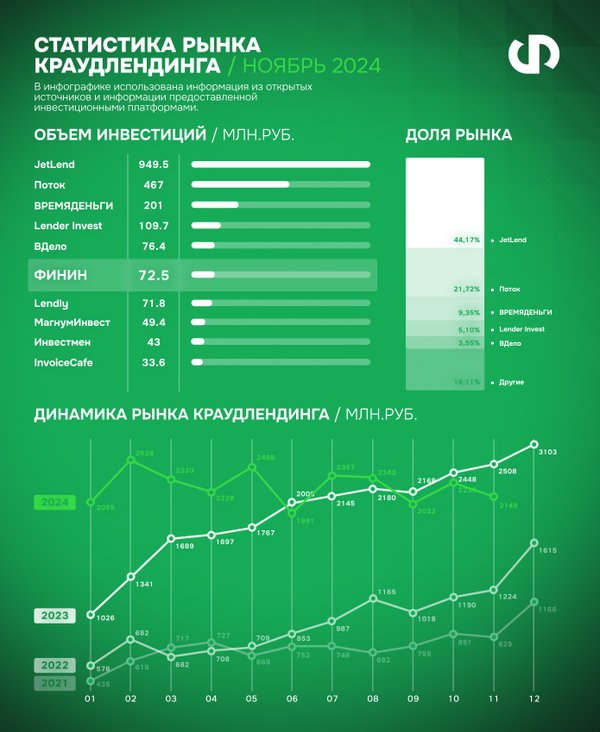 ↗ Статистика по рынку краудлендинга за ноябрь 2024 г.