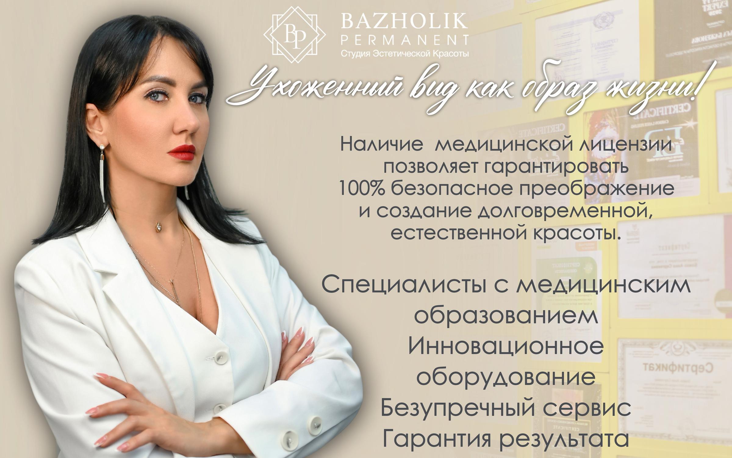 Добро пожаловать в нашу медицинскую студию косметологии BAZHOLIK! Широкий спектр бьюти-услуг, только высококачественные продукты и инновационные методики для красоты и здоровья вашей кожи. Мы стремимся создать неповторимую атмосферу для каждой из вас. Откройте новые грани собственной красоты с помощью BAZHOLIK!