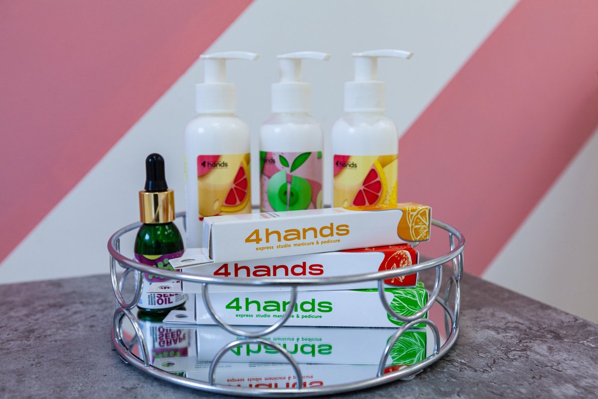 В Салоне красоты 4HANDS готовы позаботиться о ваших ногтях. Здесь способны сделать наращивание и укрепление ногтей, а также японский, бразильский, свадебный и европейский маникюр. А если вы любите, когда ваши ногти украшают лепнина, стразы, блестки или сложные узоры, мастер предложит выполнить нейл-арт. Он может и исполнить вашу задумку, и сделать популярные варианты дизайна: френч или «кошачий глаз». Вы решили посвятить время уходу за ногами? Персонал предложит вам записаться на аппаратный и комбинированный и смарт педикюр. Сотрудники учитывают состояние вашей кожи и ногтевых пластин и всегда готовы дать рекомендации по уходу за ними.
