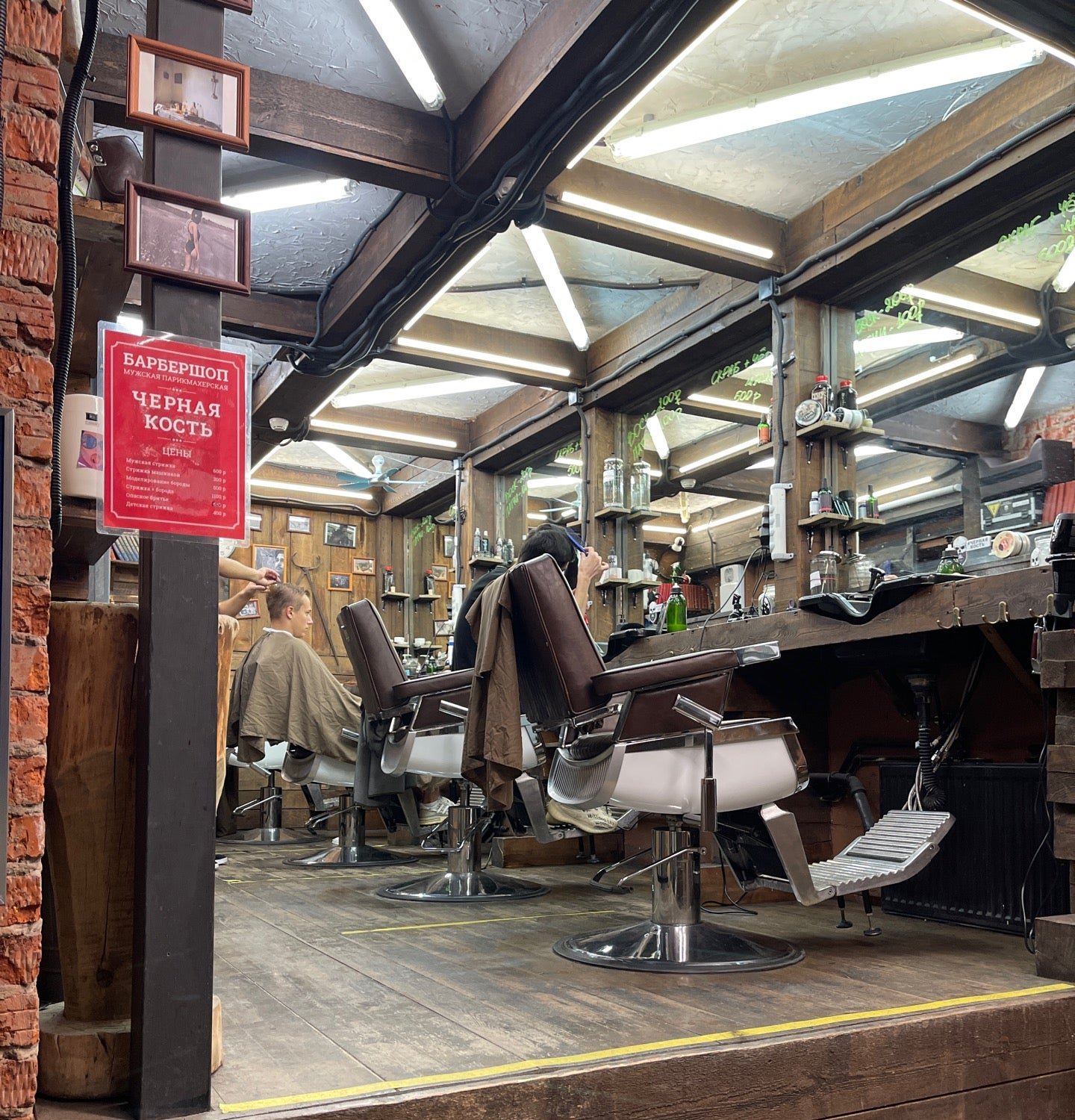 Мытьё головы шампунем личного бренда Чёрная Кость, укладка фирменной пастой для волос личного бренда...