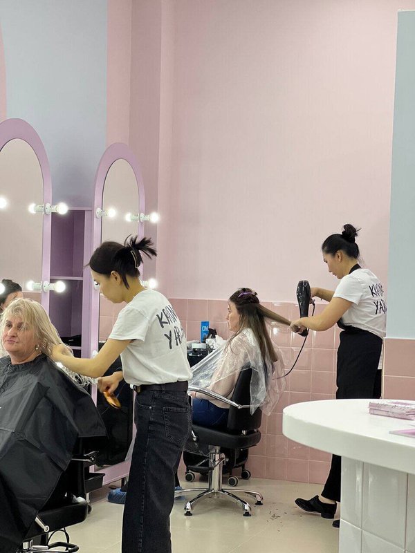 Топ-стелист(Гюнай) Её защитница Стелист (женщина среднего роста Киргизка). Бесполезный администратор(высокая блондинка)