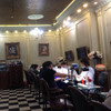 - салон достаточно большой, интерьер красивый , аквариум с рыбками , уютно.