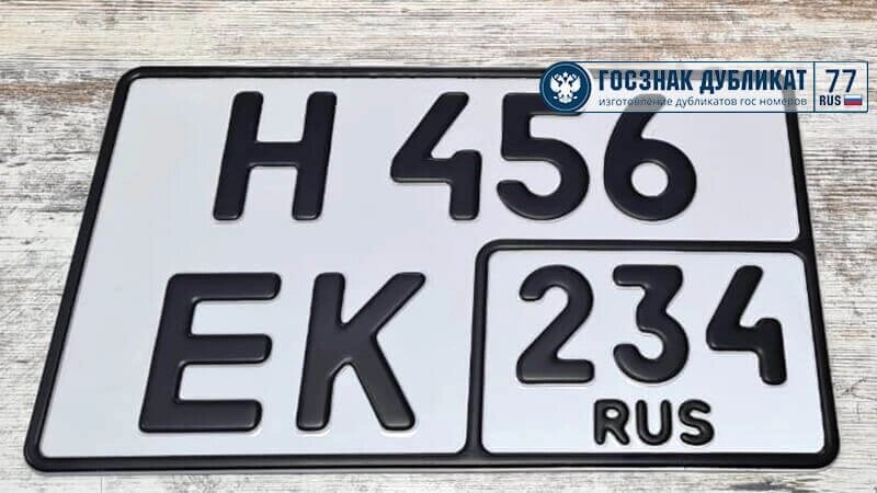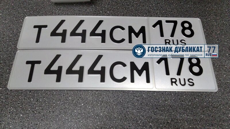 Наша компания «Госзнак Дубликат» гарантирует качественный результат. Наши специалисты изготавливают дубликаты рег номеров для любого типа транспортного средства: легкового и грузового авто, прицепа и полуприцепа, такси, автобуса и маршрутного такси, мотоцикла и даже сельхозтехники.