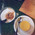 Взяли по Бенедикту с лососем. Ломтики хлеба были с ЧЕРНЫМИ горелыми корками. Яйцо-пашот маленькое и с очень водянистым желтком. Лосось — будто недорогая нарезка из соседнего супермаркета.