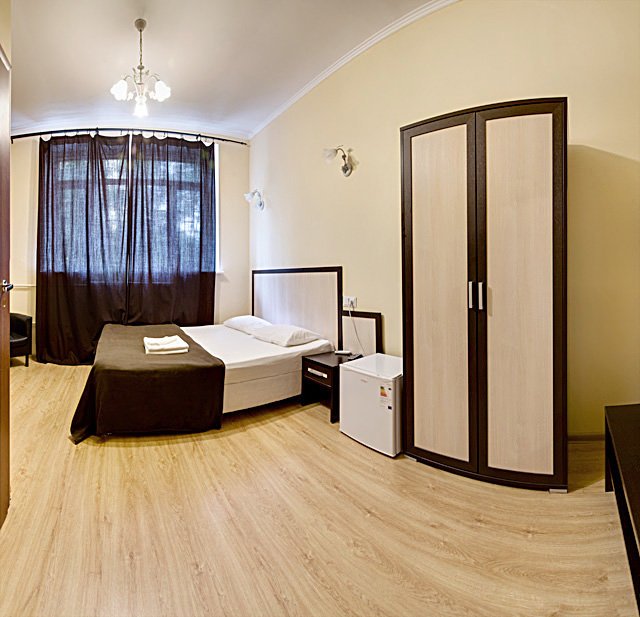 Просторные номера, выполненные в современном дизайне, площадью 16м², с двуспальной кроватью размера ...