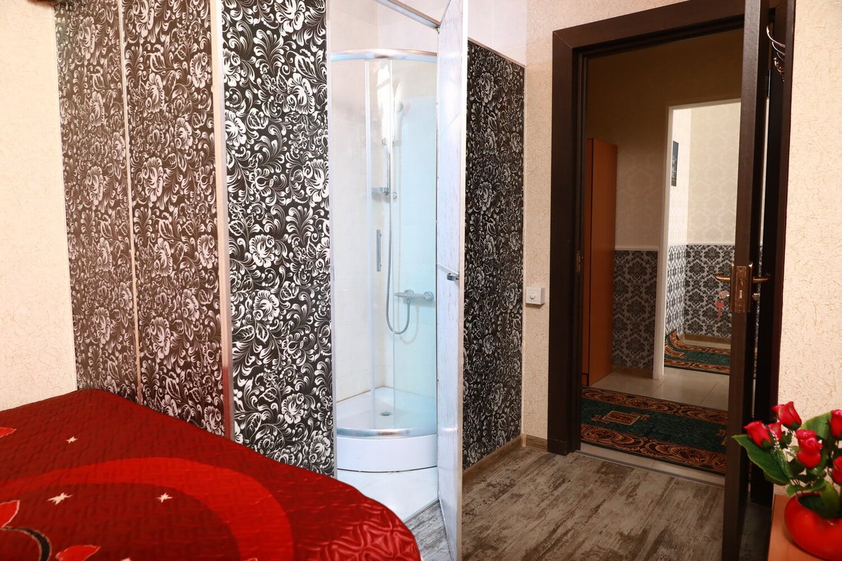 Номер на двоих.Душевая зона,сан-узел н номере.Чистое бельё,тапочки,полотенце.Рассчётный час в12.00