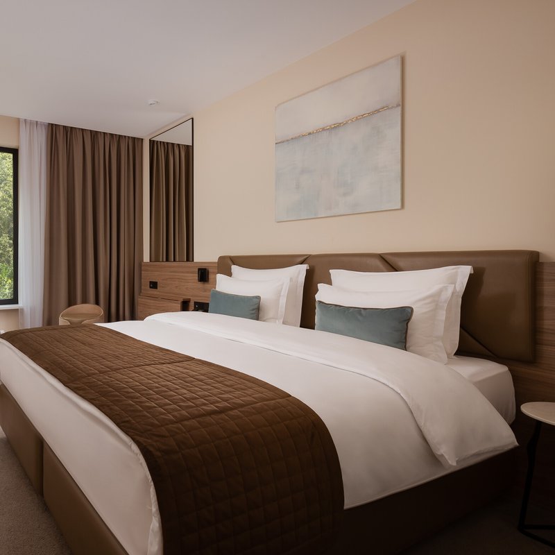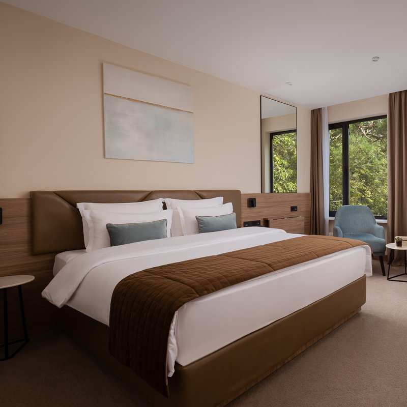 Palmira Garden Hotel & SPA расположен всего в 4 км от Москвы на территории исторического усадебного комплекса «Тимохово-Салазкино». Сегодняшняя усадьба – это настоящая жемчужина подмосковного Видного и единственный сохранившийся исторический и архитектурный памятник XIX века, расположенный в черте города. К услугам Гостей: 144 комфортных номера, европейский уровень сервиса, концептуальный центр SPA Garden с комплексом банных культур, SPA-зоной, бассейнами и фитнес-залом, рестораны, кафе-кондитерская, прогулочная парковая зона, пространство для проведения мероприятий любого формата. Номерной фонд представлен 144 номерами четырех категорий: Стандарт, Стандарт с террасой, Полулюкс и Люкс. Концепция внутреннего декора отражает особенности паркового расположения отеля. В интерьере превалируют натуральные материалы, дневное освещение, оттенки и паттерны по природным мотивам. В номерах представлена косметика My Liliaz, вдохновленная природой и наполненная энергией. Каждый аромат способен настраивать на особое ресурсное состояние, такие как уверенность, доверие и чувственность. Косметические продукты My Liliaz – это настоящие боди ритуалы, помогающие позаботиться о вашем теле благодаря природным составам и селективным ароматам, тонко настраивающим на ресурсное состояние. Именно сеть отелей Palmira Group стала первой, кто начал историю сотрудничества с данным брендом в гостиничной сфере. Качественному сну и восстановлению организма после продуктивного дня уделяется особое внимание. Просторные кровати располагают матрасами повышенного комфорта от компании «Аскона», гипоаллергенными подушками и одеялами, постельным бельем из 100%-го немецкого хлопка, который позволяет коже дышать и при этом сохраняет приятную для тела температуру. Инфраструктура отеля Palmira Garden Hotel & SPA включает два ресторана, летнюю террасу на крыше и кафе-кондитерскую Библиотека, где можно насладиться чаепитием в сочетании с десертами из натуральных ингредиентов, домашним вареньем, фирменными травяными чаями и ароматным свежесваренным кофе. Гости могут посетить ремесленные мастерские и магазин с ювелирными изделиями из натуральных камней. На территории парка проводятся разнообразные мероприятия для детей и взрослых: музыкальные вечера под открытым небом, просмотры кинофильмов и многие другие. Акватермальный комплекс располагает панорамными бассейнами для взрослых и детей, джакузи, фотарием и фитобаром. Спа-меню предлагает подводный вакуумный массаж АкваТорнадо и богатый выбор процедур с использованием премиальной косметики Biologique Recherche и Charme d’Orient, которую также можно приобрести для домашнего ухода. Банный комплекс открывает знакомство с культурой парения разных народов и приглашает посетить русскую баню с вениками, финскую сауну, хамам с мыльной комнатой, а после окунуться в прохладную купель. Для занятий спортом, помимо круглосуточного фитнес-зала с тренажерами Technogym, вниманию гостей предлагается скандинавская ходьба. Проживание всей семьей возможно в смежных стандартных номерах, полулюксах и люксах с дополнительным спальным местом. Для насыщенного досуга маленьких гостей в Palmira Garden Hotel & SPA: детский бассейн, площадка для активных игр под открытом небом, игровая комната, анимационно-развлекательная программа. Для мероприятий Palmira Garden Hotel & SPA предлагает банкетные и конфе