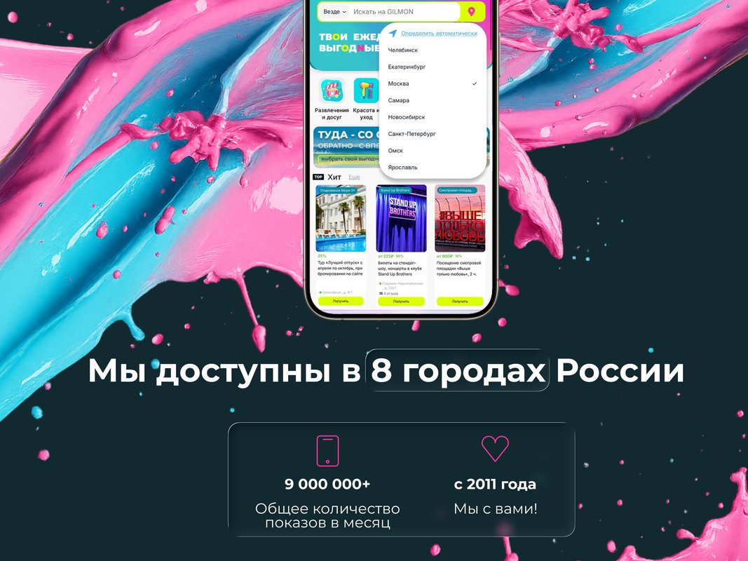 С GILMON ты легко и с улыбкой найдешь выгодные предложения в своём городе на:
