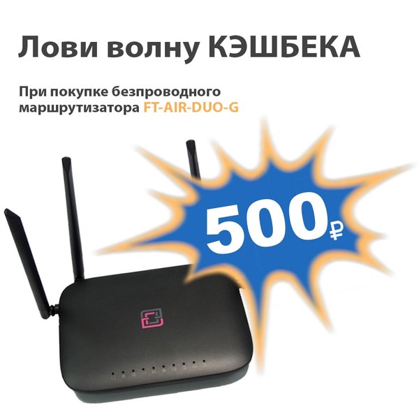 Вещь нужная в каждом доме! Беспроводной маршрутизатор fibertool FT-AIR-DUO-G Мощный роутер и что особо приятно — с кэшбеком 500 рублей на абонентский счет.