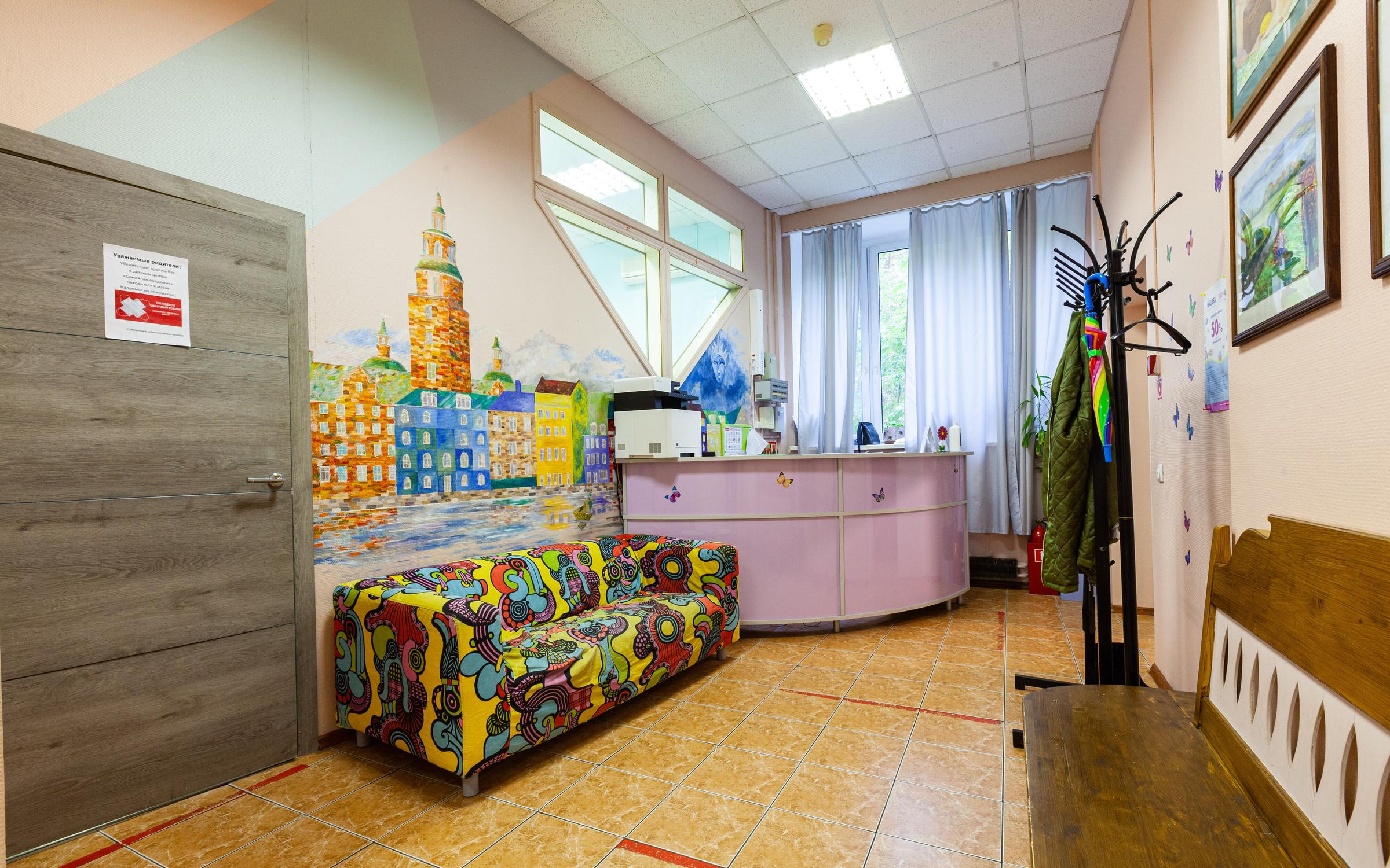 — Просторная игровая комната, где ребёнок может ожидать начала занятий или провести время после них.