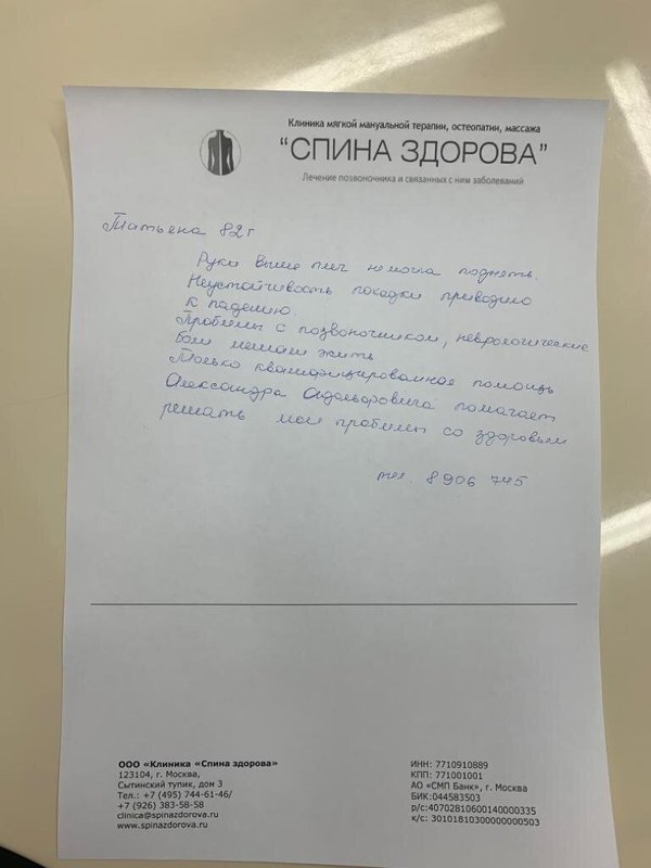 Отзывы о клинике мануальной терапии Спина здорова