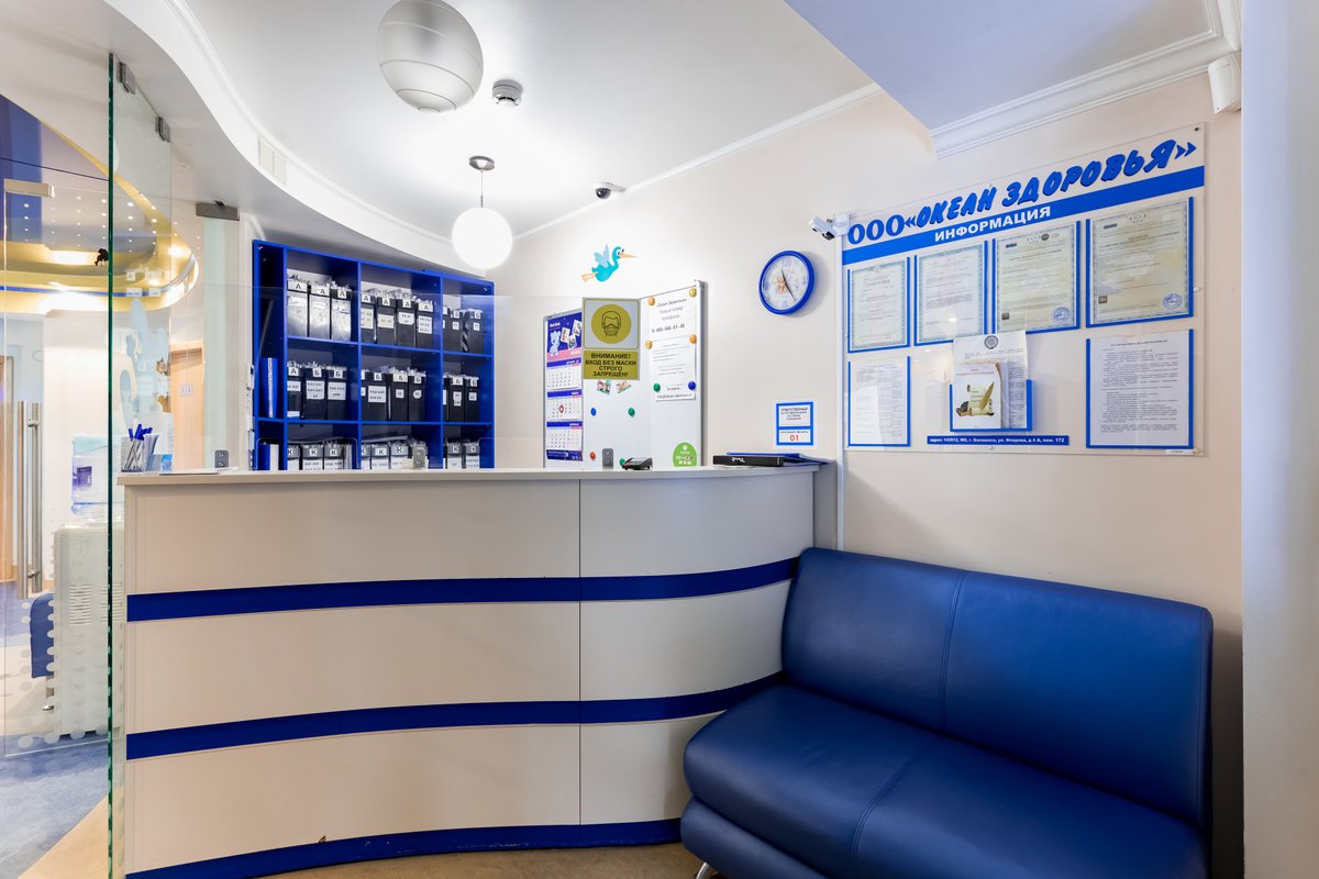 В клинике Океан здоровья ведут приём терапевт, гинеколог, ортопед, невролог, оториноларинголог, гастроэнтеролог, кардиолог, аллерголог и офтальмолог.