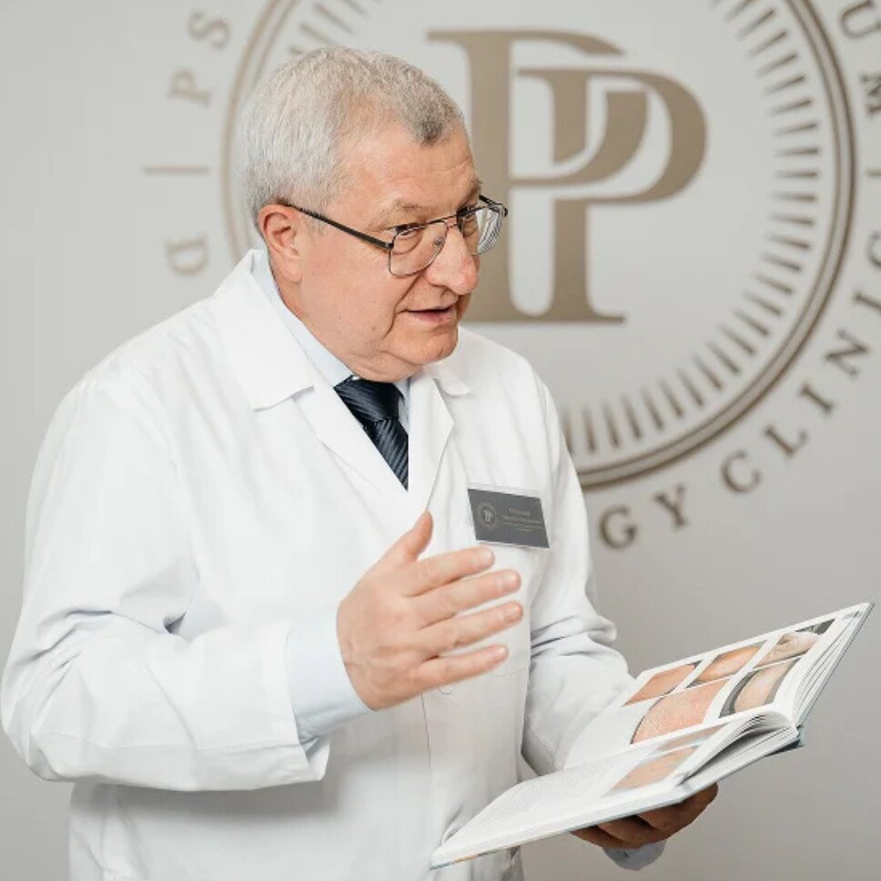 *Главный врач Мошнин Михаил Витальевич — врач-дерматолог, биофизик, занимается проблемой псориаза с 1978 года.