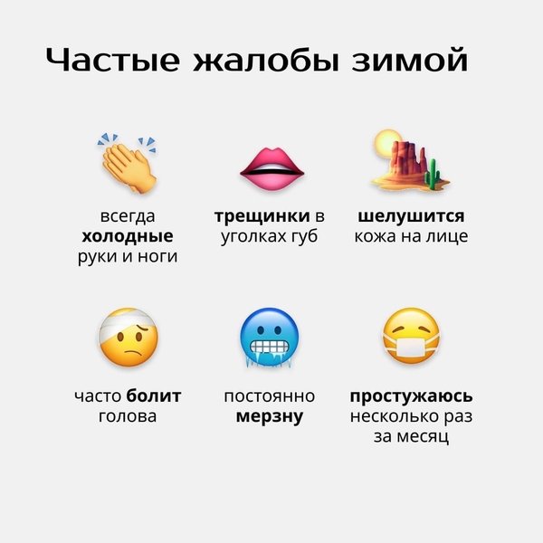 Когда за окном темнота, холод и снежная буря, сложно воспринимать зиму как время чудес. Кажется, что в такой морозный период обостряются все болезни! На картинке собрали частые жалобы зимой. Добавляйте свои варианты в комментарии Врачи нашего медицинского центра всегда готовы выслушать ваши жалобы и позаботиться о вашем здоровье