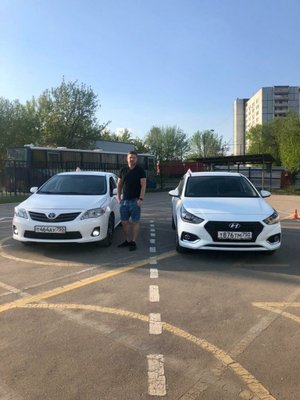 Александр проводит практические занятия на машине инструктора (АКПП) и ученика (МКПП/АКПП).