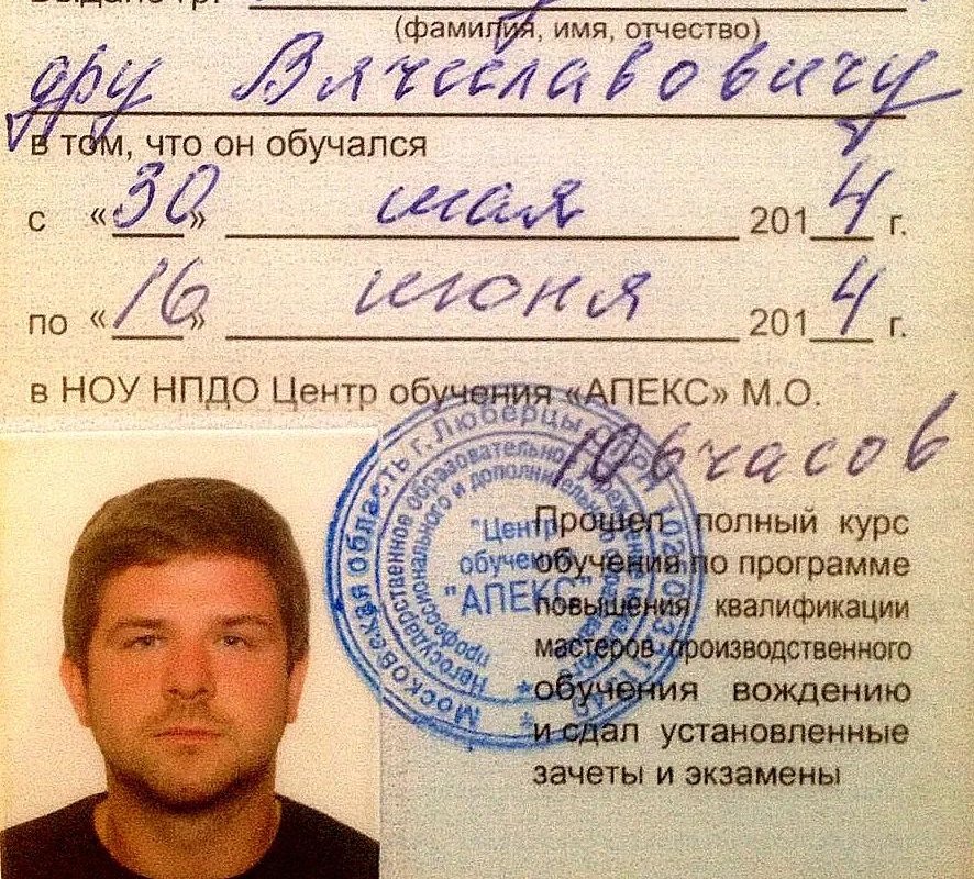 Места работы автоинструктора Александра Вячеславовича Осипова