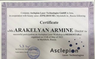 Армине Размиковна Аракелян — опытный и внимательный специалист, которая умеет делать процедуры максимально комфортными и безболезненными. Клиенты ценят её профессионализм, заботу и быстрые результаты. Она отлично разбирается в своих процедурах и всегда подробно отвечает на вопросы, создавая доверительную атмосферу.