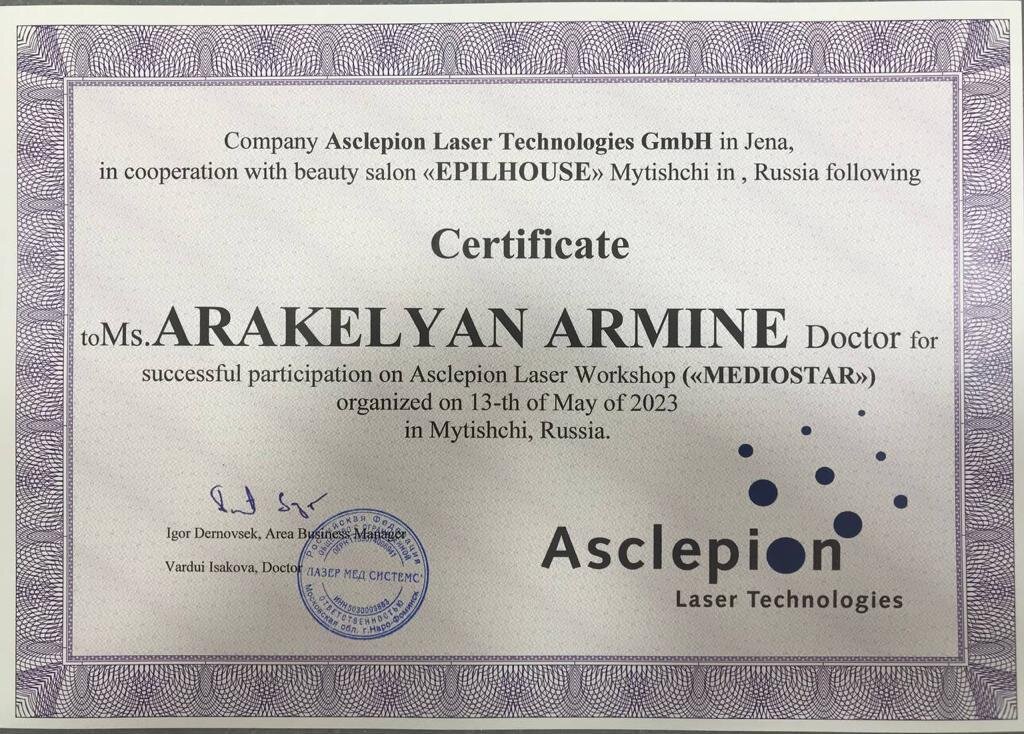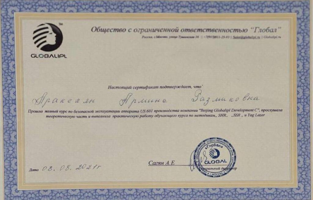 Армине Размиковна Аракелян — опытный и внимательный специалист, которая умеет делать процедуры максимально комфортными и безболезненными. Клиенты ценят её профессионализм, заботу и быстрые результаты. Она отлично разбирается в своих процедурах и всегда подробно отвечает на вопросы, создавая доверительную атмосферу.